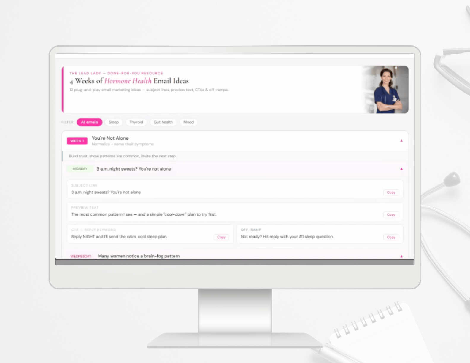 Includes plug and play subject lines, preview text, and CTAs that book consultsâwithout compliance headaches.